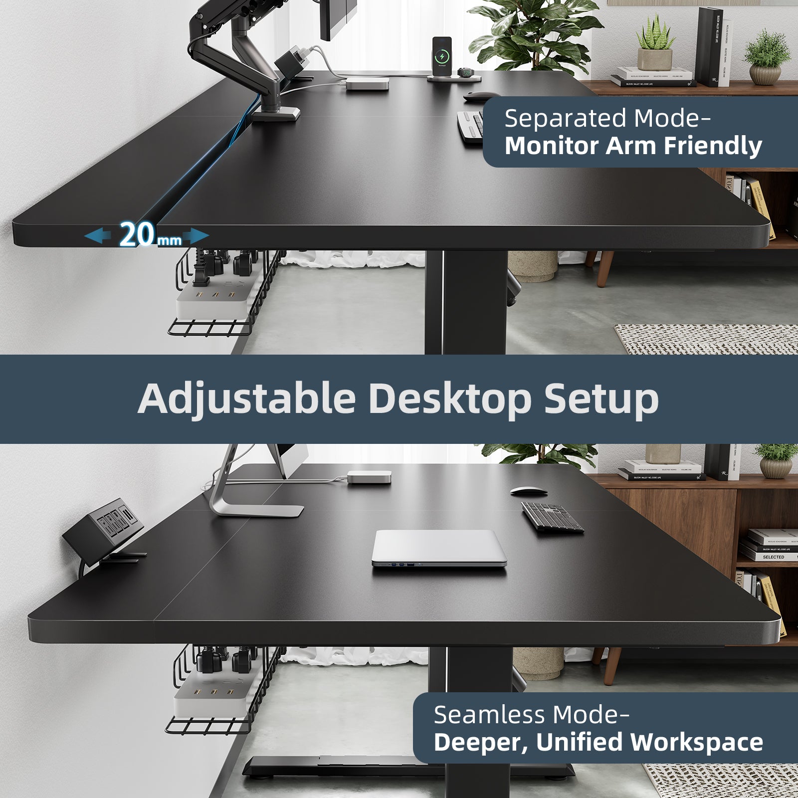 Our unique 20mm adjustable gap allows you to mount monitor arms and cables anywhere along the rear—no more clamping issues.