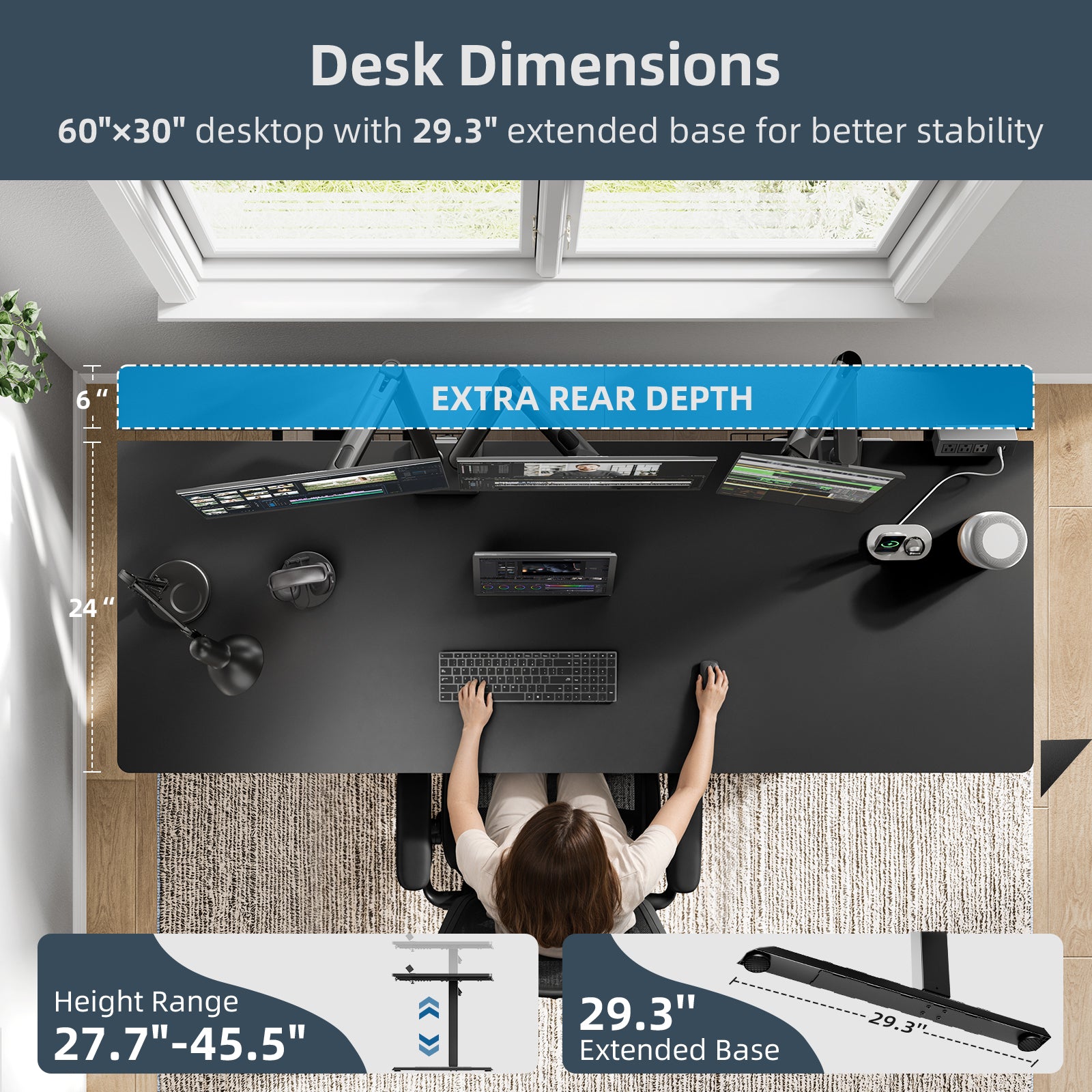 60" x 30" main surface with an additional 6" rear extension. Perfectly sized for heavy-duty setups and multi-monitor efficiency.