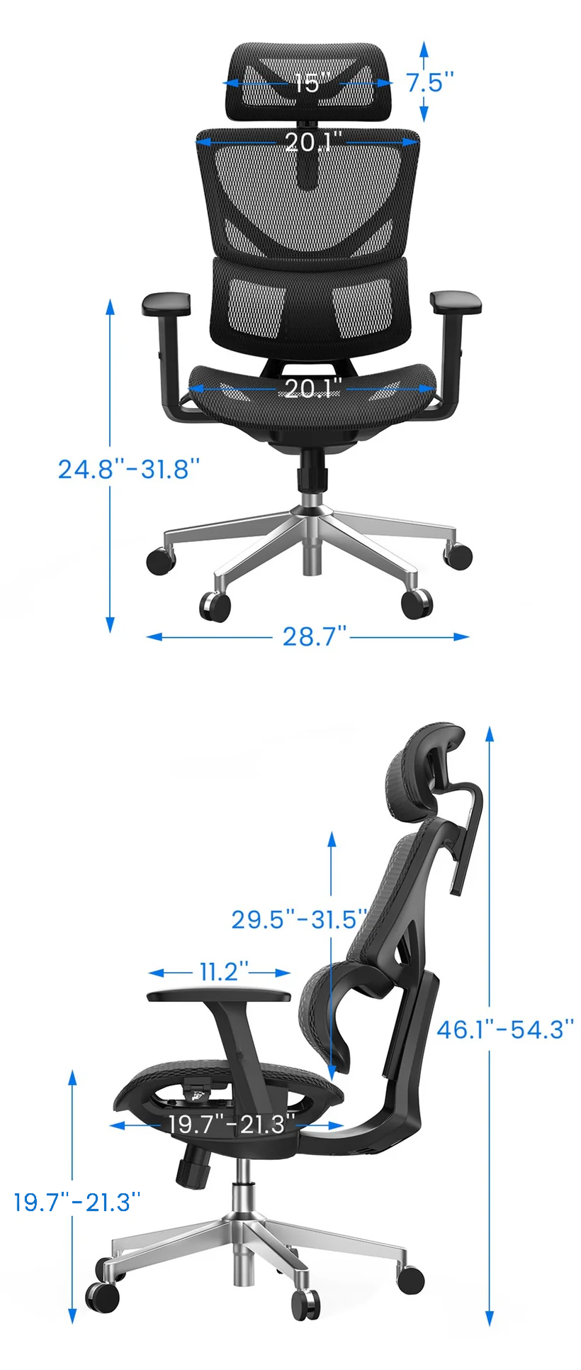The OdinLake L1 features fully adjustable height settings, making it ideal for users between 150–190 cm (4’11”–6’3”). This flexibility ensures that anyone looking for a good office chair can find the perfect seating position to maintain proper posture and comfort throughout the day.