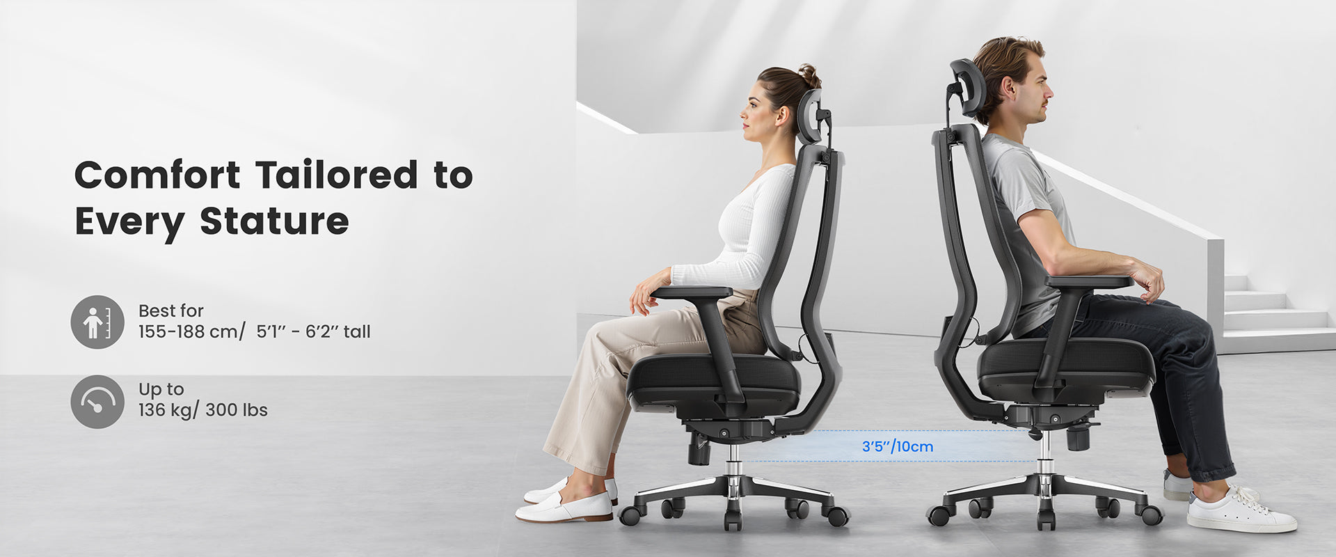 Large surface headrest can fully support your head. The angle of the headrest can be adjusted to fit your neck and relieve neck stress. The height of the headrest is also adjustable.
