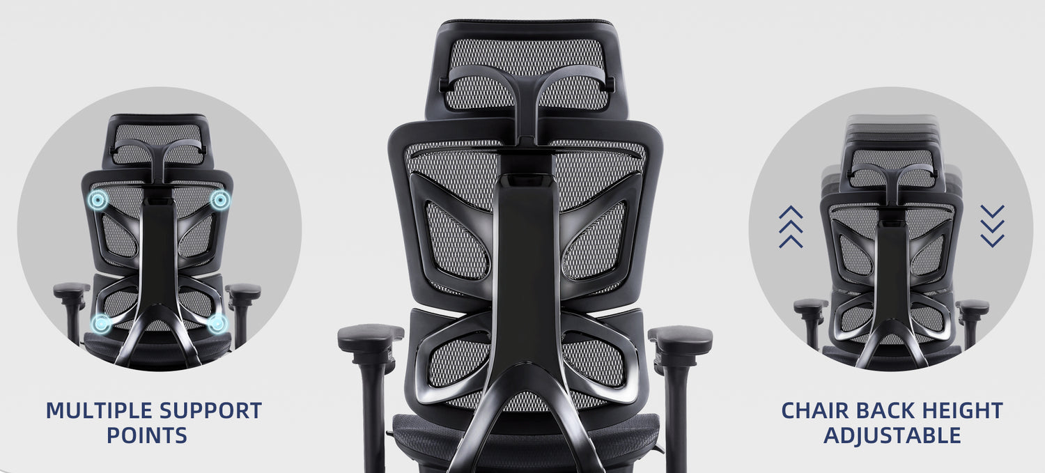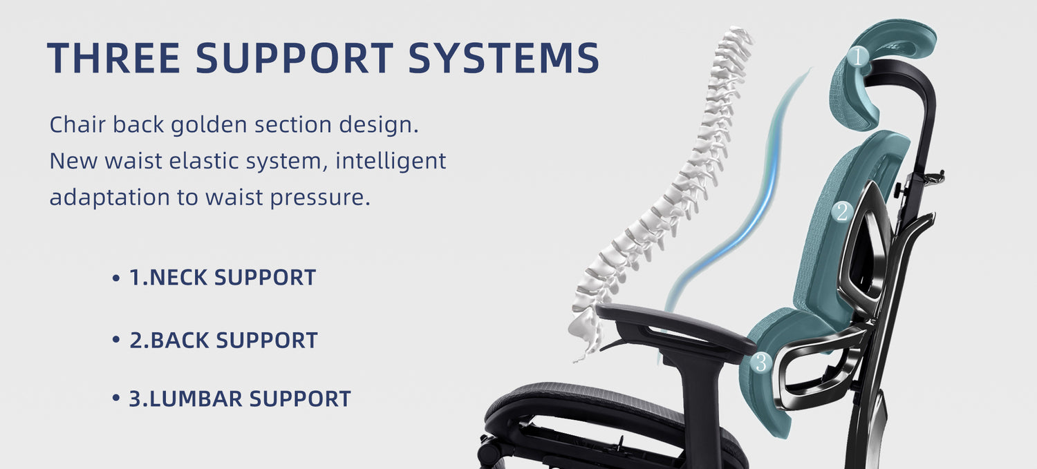 C-shape lumbar support that fits the natural curve of your spine. It's quite smart that it will always follow your movement to adjust the lumbar position, reducing any extra stress on your spine.