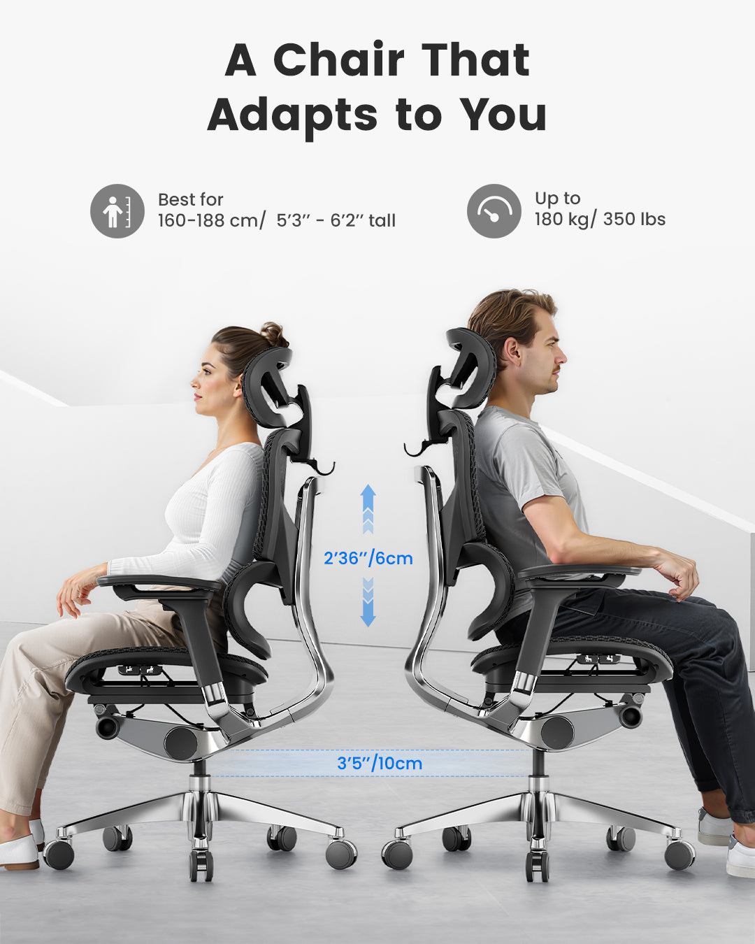 The OdinLake O1 (Ergo PLUS 743) offers a robust weight capacity of 350 lbs (158 kg), making it a reliable office chair ergonomic option for a wide range of users. This strong support ensures that the chair maintains its structural integrity and ergonomic benefits even under heavier loads, providing comfort and stability throughout the workday.