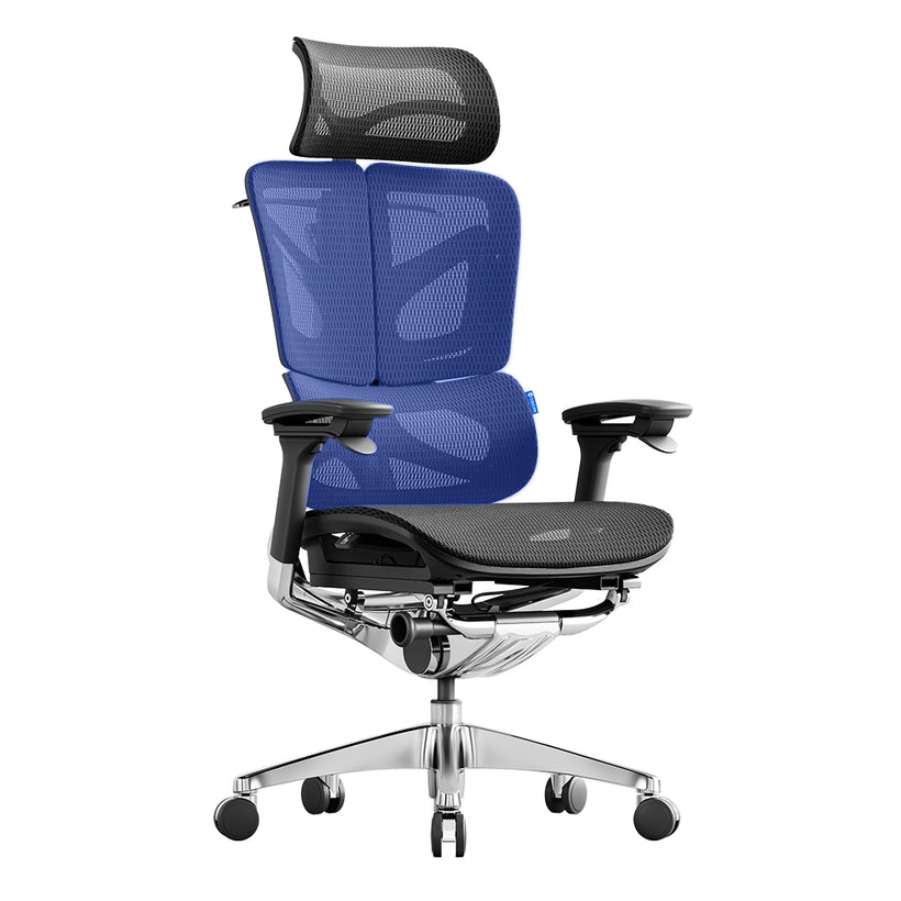 Discover unparalleled comfort with the OdinLake Ergo BUTTERFLY 753 ergonomic chair. The 2D headrest, butterfly split backrest, flexible lumbar support, and optional footrest provide comprehensive support, ensuring a relaxed and stress-free seating experience in daily use.