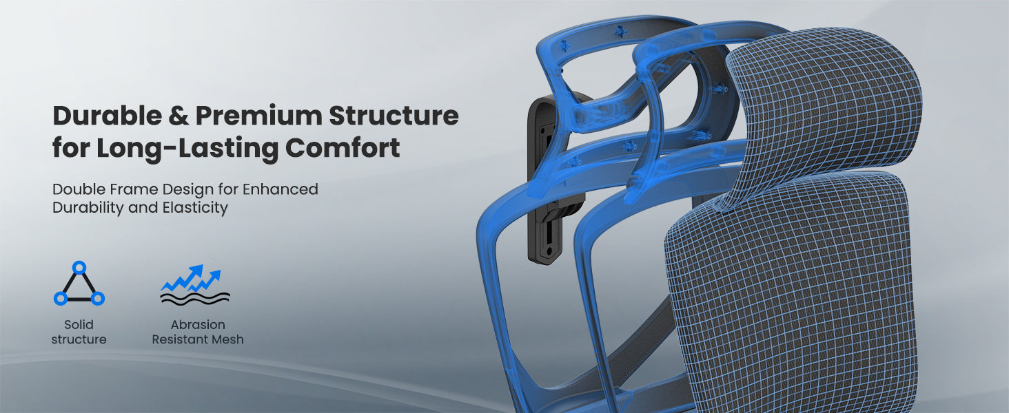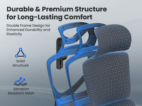 Korean mesh is built for comfort and longevity. It’s highly breathable to keep you comfortable during long sitting sessions, and it holds its shape for up to 15 years. Enjoy lasting support with a material that blends comfort, durability, and style.