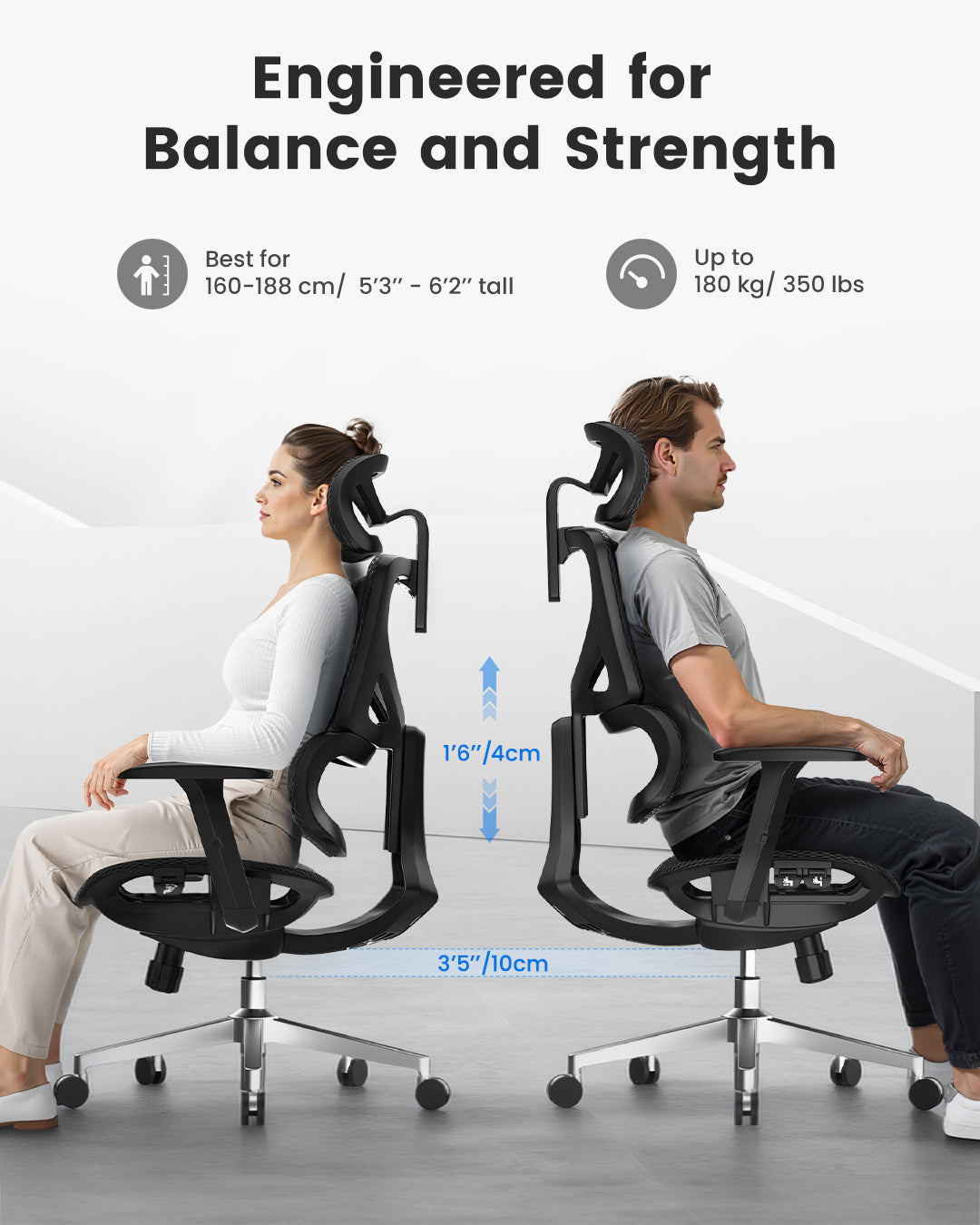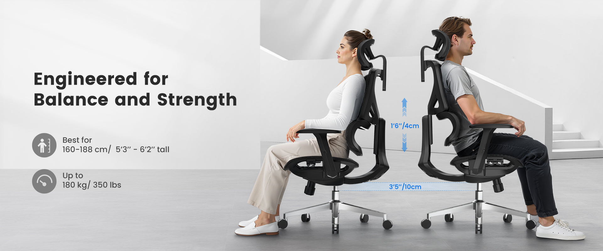 The OdinLake L1 features fully adjustable height settings, making it ideal for users between 150–190 cm (4’11”–6’3”). This flexibility ensures that anyone looking for a good office chair can find the perfect seating position to maintain proper posture and comfort throughout the day.